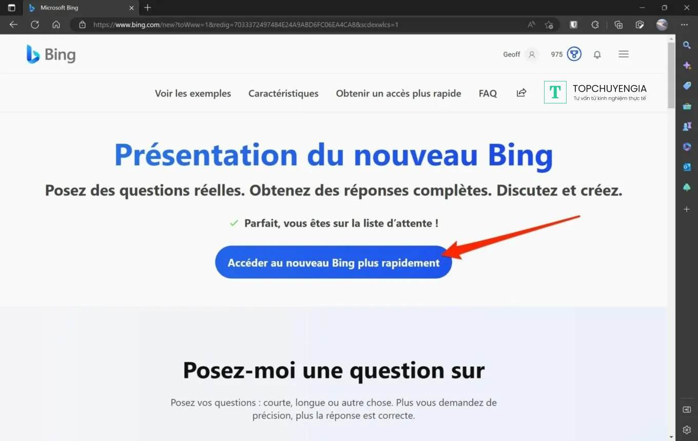 Sau khi thực hiện các bước trên thì mặc định bạn sẽ dùng được Bing mới, tuy nhiên, thực tế thì bạn có thể cần chờ đợi để yêu cầu được duyệt. Lúc này, bạn có thể bấm nút “Thử ngay” để dùng Chat GPT.