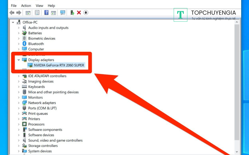 Dùng trình quản lý thiết bị Device Manager để xem GPU trên hệ điều hành Windows