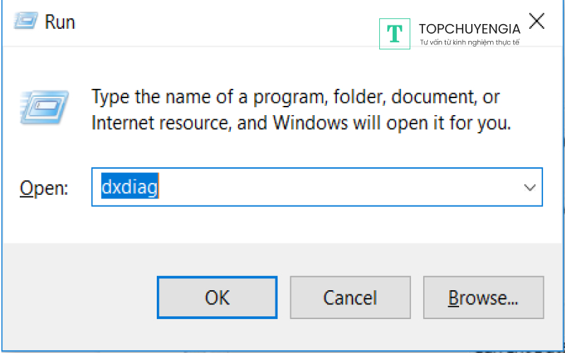 Nhập lệnh dxdiag vào hộp thoại Run