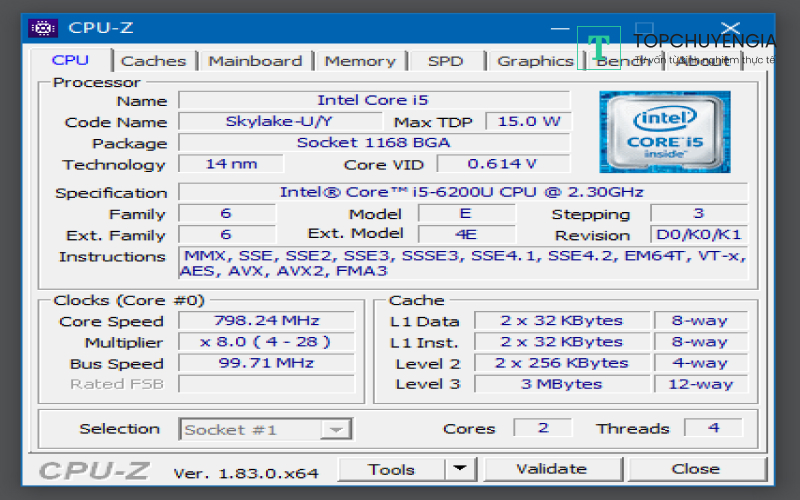 Bước 1: Bạn tải và cài đặt phần mềm CPU-Z ở trang chủ https://www.cpuid.com/softwares/cpu-z.html