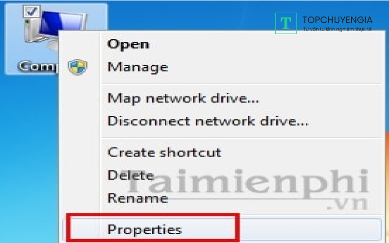 • Xem thông số cấu hình máy tính bằng tùy chọn Properties