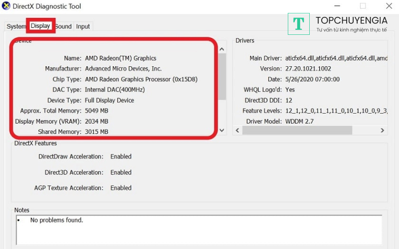 • DirectX Version: Phiên bản DirectX đang chạy.