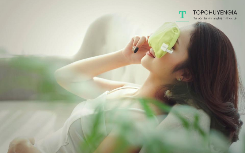• Bước 2: Cho đá vào túi và đặt lên hai mắt và ngồi thư giãn. Chú ý nên ngồi ngửa người ra sau hoặc nằm để hạn chế ướt quần áo