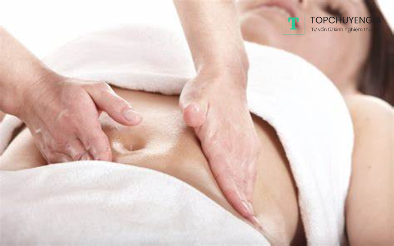 • Bước 3: Úp lòng bàn tay trên rốn và xoa đều theo kim đồng hồ và di chuyển dần xuống xương mu. Thực hiện ít nhất khoảng 30 lần. Trong lúc thực hiện bạn hãy thả lỏng đầu óc và tưởng tượng về những điều tốt đẹp, yên bình.