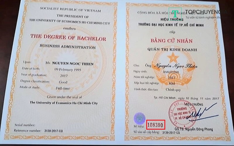 Mỗi tấm bằng chỉ có duy nhất một số hiệu văn bằng, dãy số này đều khác nhau và tồn tại duy nhất vì thế kiểm tra bằng thật hay giả nhanh nhất là truy cập vào website chính thức của nhà trường và nhập số hiệu trên văn bằng để kiểm tra có khớp với dữ liệu trên trang web hay không.