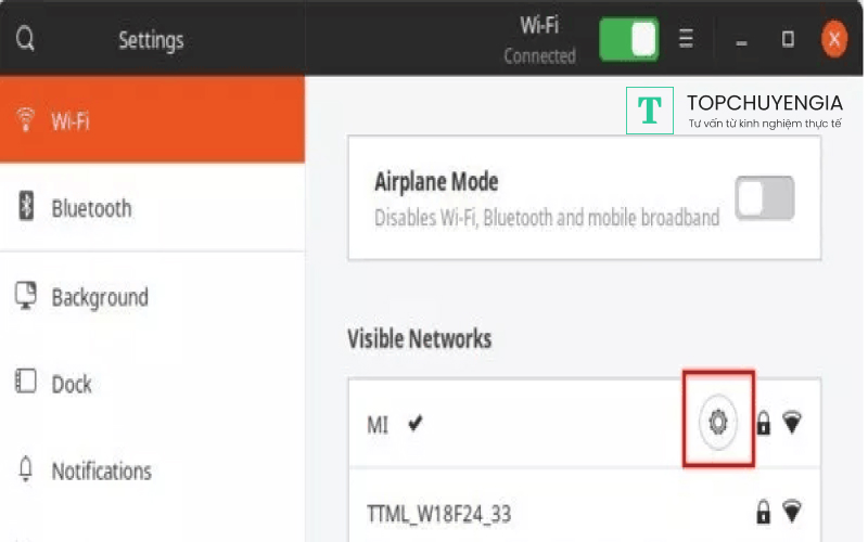 Người dùng chỉ cần truy cập vào phần Cài đặt mạng (Wi-fi settings), sau đó vào bánh răng cưa ở mục tên wifi bạn muốn xem mật khẩu