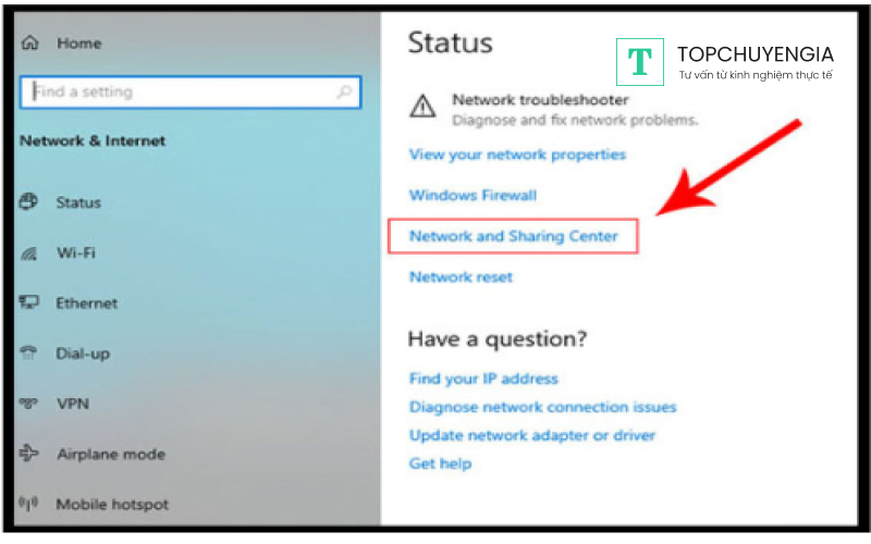 Bước 3: Trong cửa sổ Network & Internet, bạn chọn vào mục Network and Sharing Center.