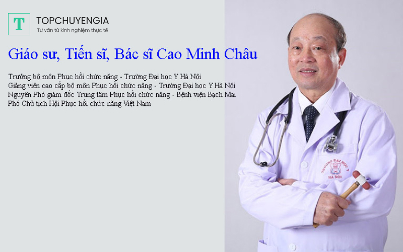 Giáo sư, Tiến sĩ, Bác sĩ Cao Minh Châu là một trong những chuyên gia vật lý trị liệu có tên tuổi nhất ở khu vực phía Bắc nói riêng và cả nước nói chung. Ông hiện đang giữ chức vụ Phó Giám Đốc Trung tâm phục hồi chức năng tại Trường đại học Y Hà Nội và là Phó Chủ Tịch Hội Phục hồi chức năng hàng đầu tại Việt Nam. Được đánh giá là một trong những bác sĩ ưu tú và cực kỳ giỏi trong lĩnh vực vật lý trị liệu và phục hồi chức năng. Ông không chỉ là một người có kiến thức chuyên môn cực kỳ cao mà ông còn có kinh nghiệm thực tiễn và dày dặn sau nhiều năm thăm khám và chữa trị cho hàng nghìn bệnh nhân khác nhau và ông luôn coi họ như người thân trong gia đình để chữa trị. Đặc biệt là điểm mạnh của ông đó chính là điều trị những bệnh nhân có di chứng sau phẫu thuật cơ, xương và khớp, bệnh lý liên quan đến nhóm thần kinh trung ương, thần kinh cột sống. Không dừng lại ở việc điều trị mà ông luôn cố gắng học hỏi thêm những kỹ thuật mới và những kiến thức mới về điều trị trong và ngoài nước để nâng cao tay nghề mình.