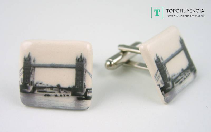 Đi Anh mua gì để tặng phái nam? Một món quà cho quý ông lịch lãm khi đi Anh là khuy măng sét có in hình biểu tượng Tower Bridge nổi tiếng ở London. Những chiếc khuy măng sét sang trọng được sản xuất tại quận Deptford, thuộc Đông Nam London. Đây là phụ kiện thời trang không thể thiếu trong tủ đồ của quý ông hiện đại, không quá lòe loẹt mà thay vào đó, những chiếc khuy măng sét nhỏ bé lại giúp quý ông toát lên vẻ tinh tế và thanh lịch đúng chất cổ điển.