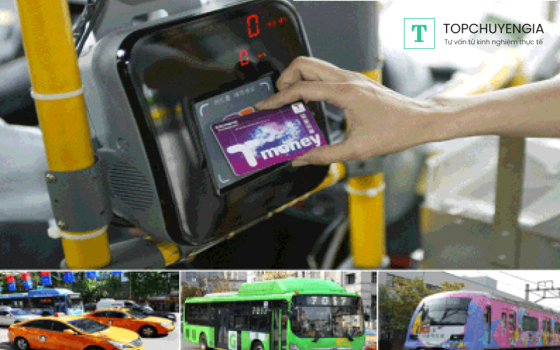 Để tiết kiệm hơn nữa một lời khuyên là bạn nên mua một thẻ T - Money, dùng để thanh toán khi đi các phương tiện công cộng tại Hàn, loại thẻ quen thuộc đối với các bạn du học sinh. Bạn có thể dùng thể này để đi xe buýt, tàu điện ngầm,... Bạn chỉ cần quẹt thẻ ở các cổng vào ga hay lên xe bus thay vì mua vé từng chặn. Thẻ được mua ở các hệ thống các cửa hàng tiện lợi. Khi hết tiền bạn có thể nạp tiền tại các máy nạp tiền tại các ga tàu điện hoặc nơi bán chúng. Một số phương tiện được dùng phổ biến khi đi du lịch Hàn Quốc: