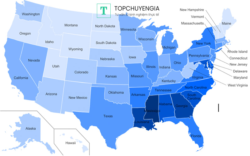 Chi phí sinh hoạt ở Mỹ sẽ có khác biệt rất lớn phụ thuộc vào bang và thành phố mà đang ở. Theo thống kê, các khu vực Trung Tây nước Mỹ có chi phí sinh hoạt thấp hơn, còn khu vực Đông và Đông Bắc có chi phí sinh hoạt cao nhất. Dưới đây, là số tiền sinh hoạt phí trung bình cho từng thành phố nên đi du học Mỹ của một số bang tiêu biểu dưới đây: