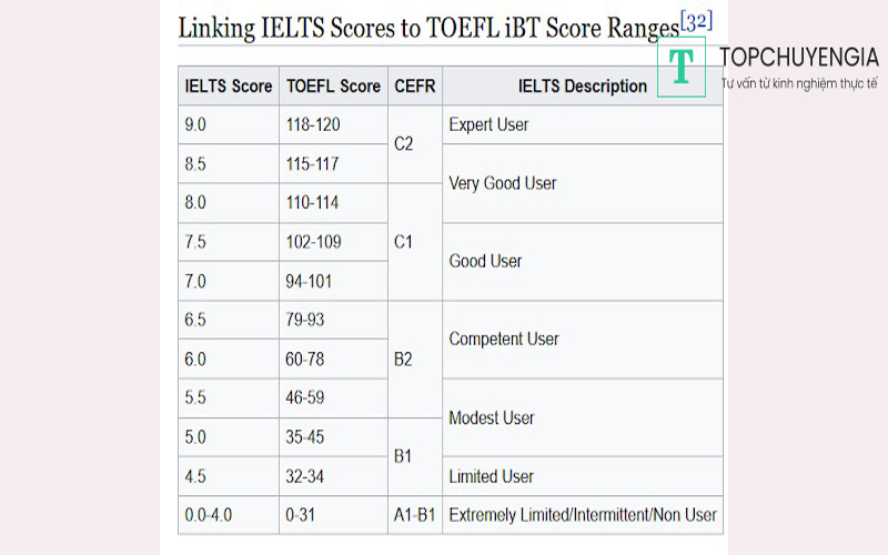Bảng điểm so sánh giữa IELTS và TOEFL