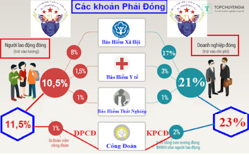 Người lao động phải đóng tổng các loại bảo hiểm với tỷ lệ 10.5%